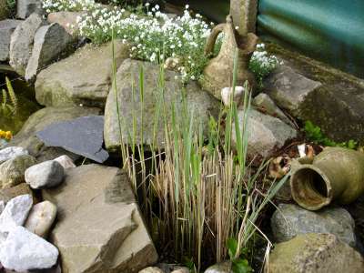 een lage riet soort staat niet in de vijver maar in de overloop gemaakt met een metserskuip