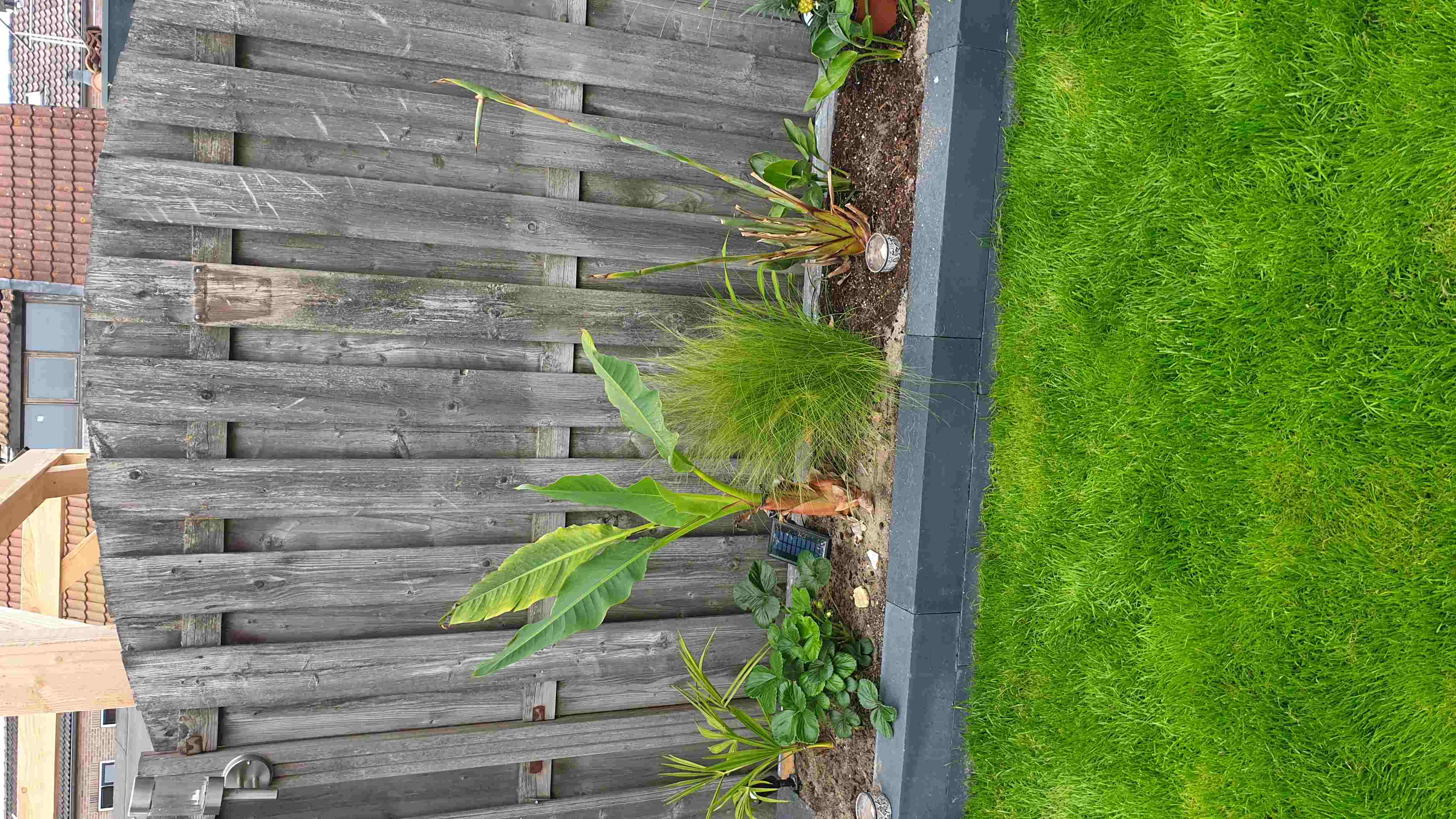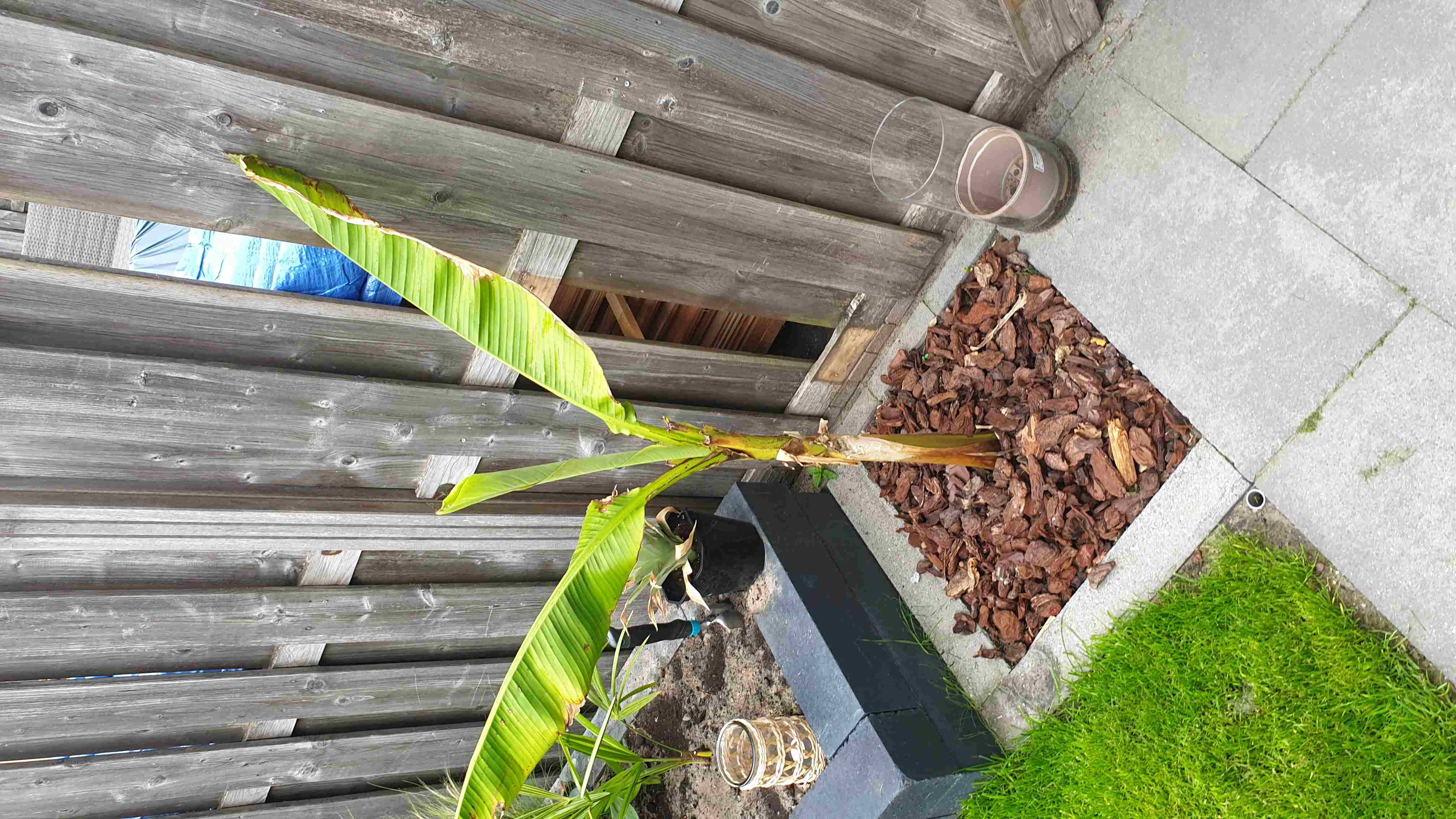 maar vrees dat je banaan in de volle grond in dat vierkant tussen die tegels een ietsiepietsie te weinig plaats zal hebben binnen enkele jaren.