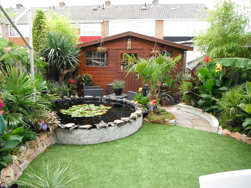 Hierbij nog twee foto's en het ontwerp van de tuin. Ik moet nog de vijverrand