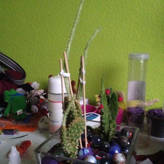 Dit is een cactus (weet niet welk soort) van mijn vriendin, en deze maakt al sinds een poosje hele lange, licht gekleurde en snelgroeiende scheuten aan. Is dit het gevolg van lichtgebrek of heeft dit een andere oorzaak?