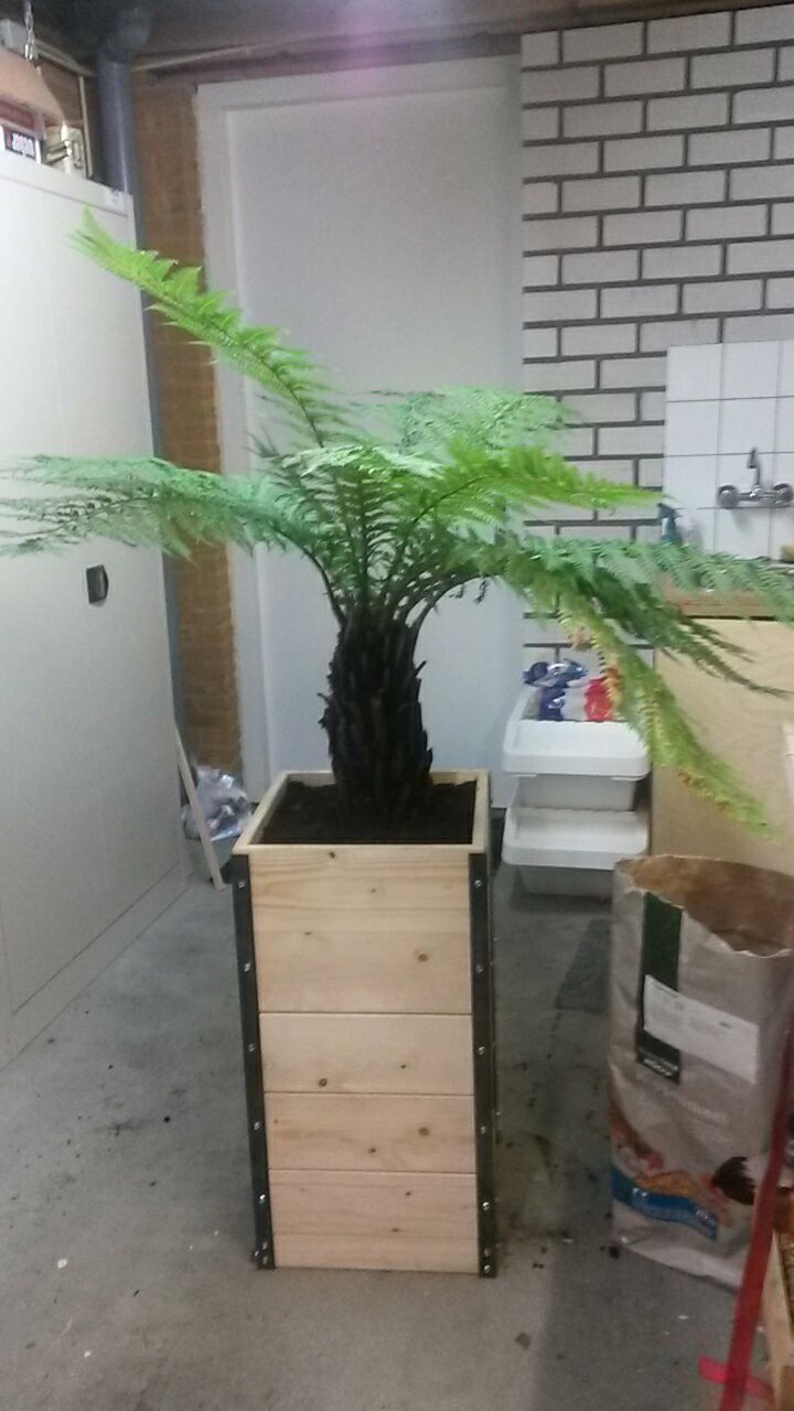 Dat ziet er prachtig uit, ook je nieuwe planten bak :thumb_up: ,[wat groot om dit nog als pot te benoemen] bedenk wel dat de inhoud over 2 jaar een wortel kluit zal zijn, in het algemeen maakt dat niet zoveel uit je kunt met halve concentratie vloeibare mest jaren vooruit, mijn wat grotere D.a staat nu 6 jaar in de de zelfde container en gaat nog steeds goed.