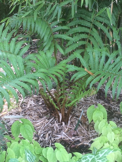 De ontwikkeling van de nieuwe rollen van de C.atrox var. atrox gaat mooi dit jaar, ik had flink gesnoeid waar die normaal staat en krijgen de boomvarens, varens daar wat meer zon op de kruinen, de stammetjes en potten blijven in de schaduw,