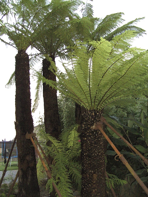 Gewoon een korf rond de boomvaren tot 40cm (of meer) boven de kop en alles vullen met haksel. Het geeft niet welk haksel berk, deen of van het containerpark.