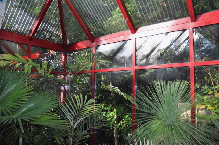 Ik prijs me gelukkig in het bezit van een plantenkas zodat niet meer 's winters de slaapkamers vol staan met kuipplanten. Een paar soorten overwinteren nog wel binnenshuis omdat die de min. kastemperatuur van ± 2°C niet overleefden ondanks hun vermeende tolerantie voor lage temperaturen. Het meerendeel van de kuipplanten verdraagt echter temperaturen tot om en nabij het vriespunt. Terwijl Chamaedorea elegans verrassend goed koude blijkt te verdragen, sneuvelden eerder Howea, Phoenix roebelenii en Ravenea glauca. Van de laatste is nu nog 1 exemplaar over en die staat weer tijdelijk in de woonkamer. Howea forsteriana en Dypsis decaryi die evenals Ravenea in de zomer in de tuin staan, overwinteren bij 10-15°C. Yucca, Cordyline en palmsoorten die matige vorst verdragen staan nog buiten, i.e. Butiagrus, Chamaerops en Trachycarpus sp.