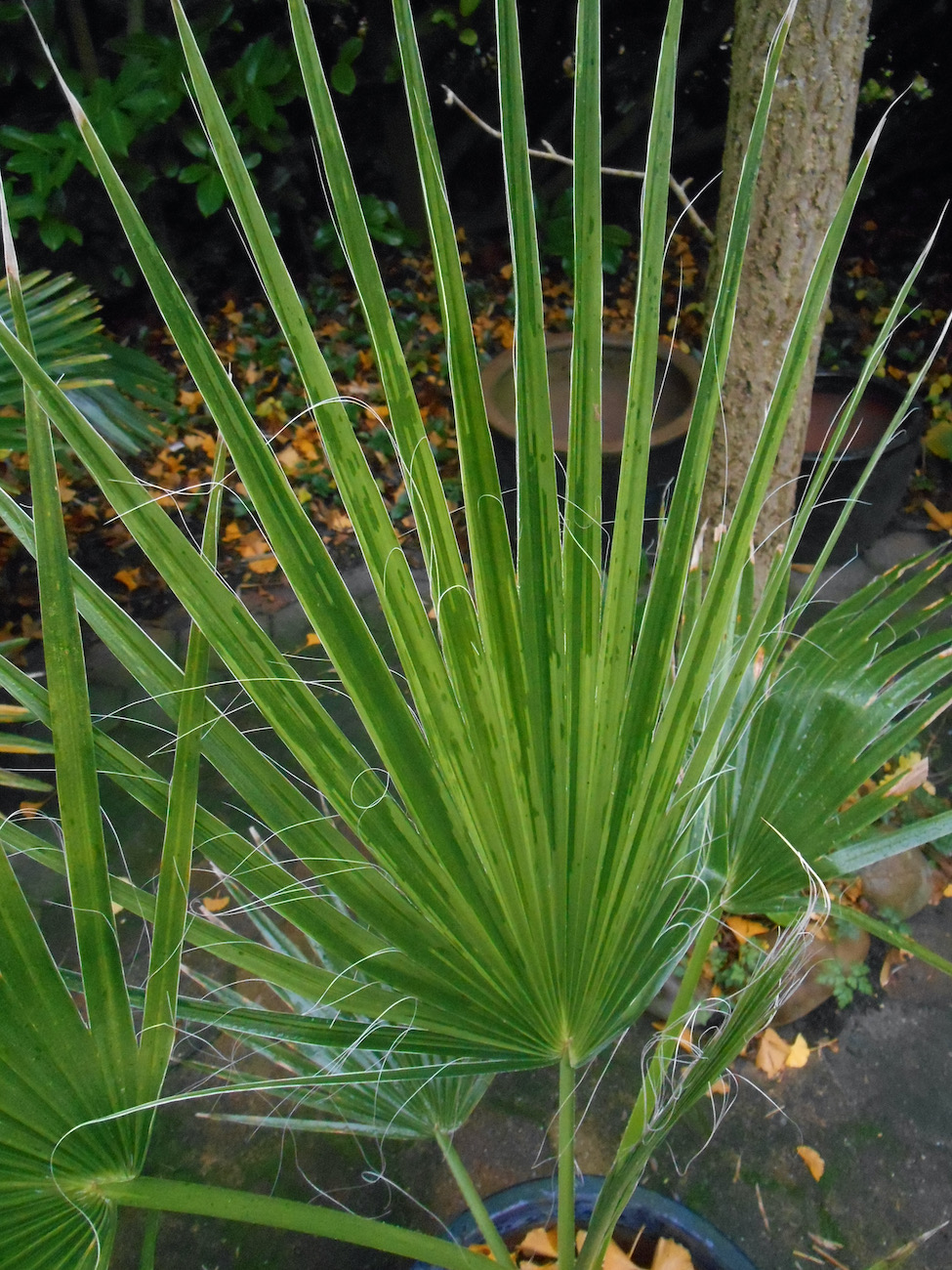 Ook bijvoorbeeld de Tetrapanax bladeren waren gelijk donker, en een paar andere soorten vertoonden ook al lichte maar duidelijke bladschade hier.