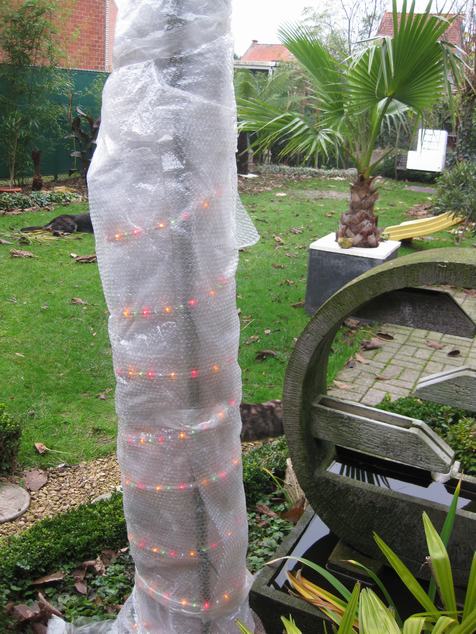 Da's ook mijn idee, ik ben een beetje lui en heb ook geen zin om de hele winter op zo'n constructie te kijken die bovendien nog geld kost (de lichtslang) én veelal geen garantie op een overlevende banaan geeft... ik heb de mijne dus vandaag uitgegraven, en op 10 min is dat gefikst en ze kunnen gewoon in het donker overwinteren.