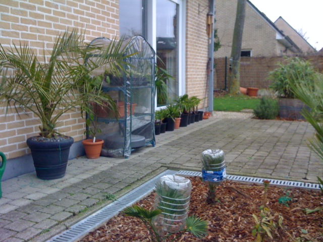Hier trouwens nog een foto van wat kleinere palmpjes in zo'n 5L fles. Dat werkt wel prima hoor.