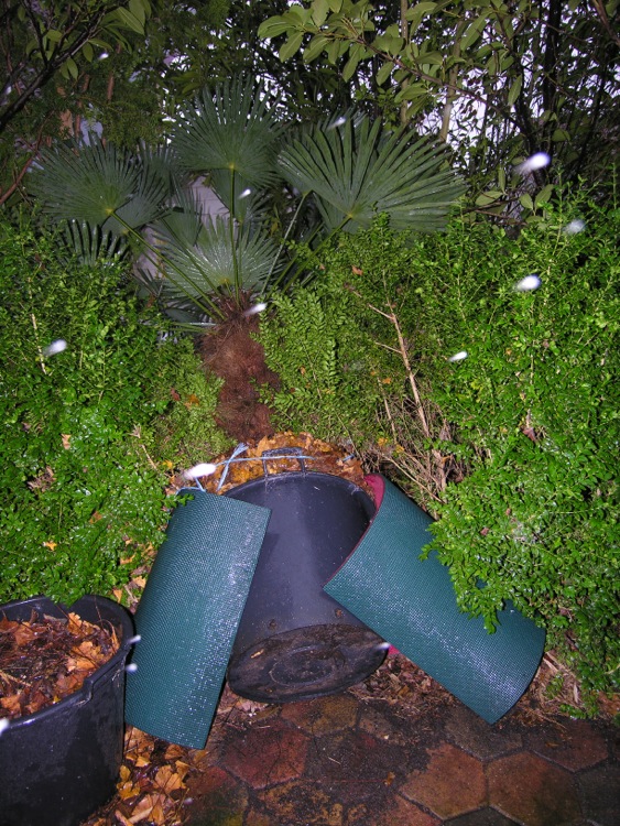 Tweede kerstdag toch de trachy's een beetje beschermd met een lap plastic zodat deze niet teveel vocht/sneeuw in het groeipunt konden krijgen.