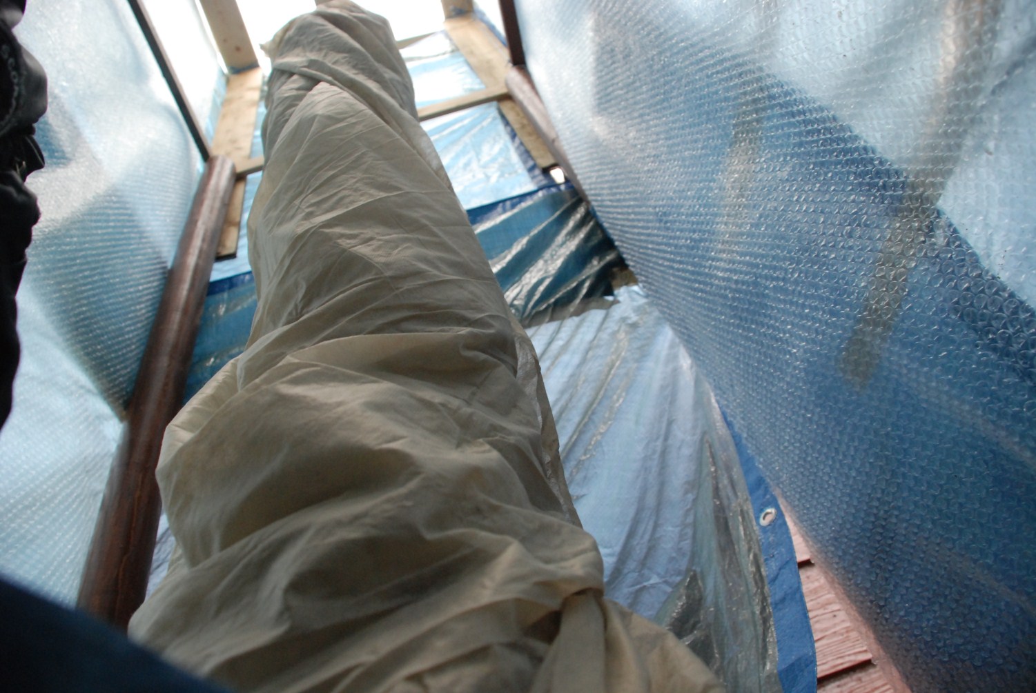 Benieuwd of het deze winter wel zal lukken,nu eens geprobeerd met een zeil aan de buitenkanten van de houten constructie,binnenzijde met noppenfolie rond de stam van de Musa Basjoo een lichtslang van 150 watt,en daarrond ga ik dan wat vliesdoek aanbrengen.