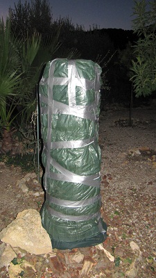 Deze banaan de red tiger ingepakt in zuid frankrijk voor mijn ouders. Inpakken volgens bestudering van dit forum. Toch lijkt het me allemaal erg heet. In de winter kan het ook daar nachtvorsten hebben tot -8 / -10. Vandaar de voorzichtigheid en misschien heb ik hem overdreven ingepakt. Willen jullie mij van advies voorzien? De red tiger staat er sinds augustus in en heeft een enorme groei doorstaan, het nadeel is dat de mistral wind zijn bladeren beschadigt heeft. Ook dat is overigens niet lelijk, vindt ik. Heb hem proberen te beschermen door de banaan te plaatsen achter een rij cipressen, verder vraagt hij om veel water omdat het gebied droog is. Hij staat geworteld in kleigrond, overigens gemengt met potgromd. Zouden jullie mij willen wijzen op evt onhandigheden van mij, zodat ik mijn ouders kan inlichten om veranderingen aan te brengen.