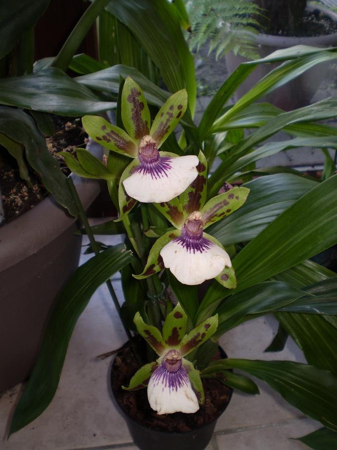 Gisteren ben ik even langsgeweest in een tuincentrum in de buurt en er stonden veel orchideeën in solden. Ik heb er deze grootbloemige Zygopetalum gekocht