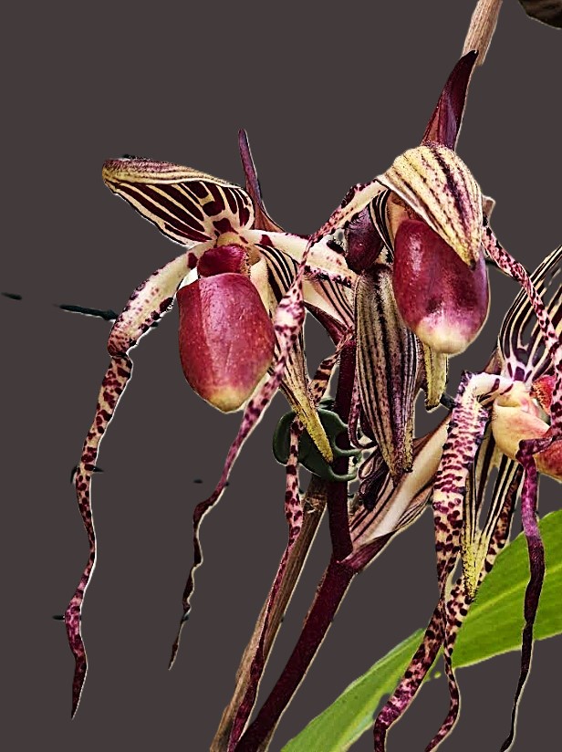 Eén van de andere ouders is een andere veelbesproken en peperdure Paphiopedilum, de rothschildianum, een beauty! En in combinatie met de Paph. stonei, die erom bekend staat dat je m maar eens in je leven ziet bloeien, zo langzaam zijn ze.