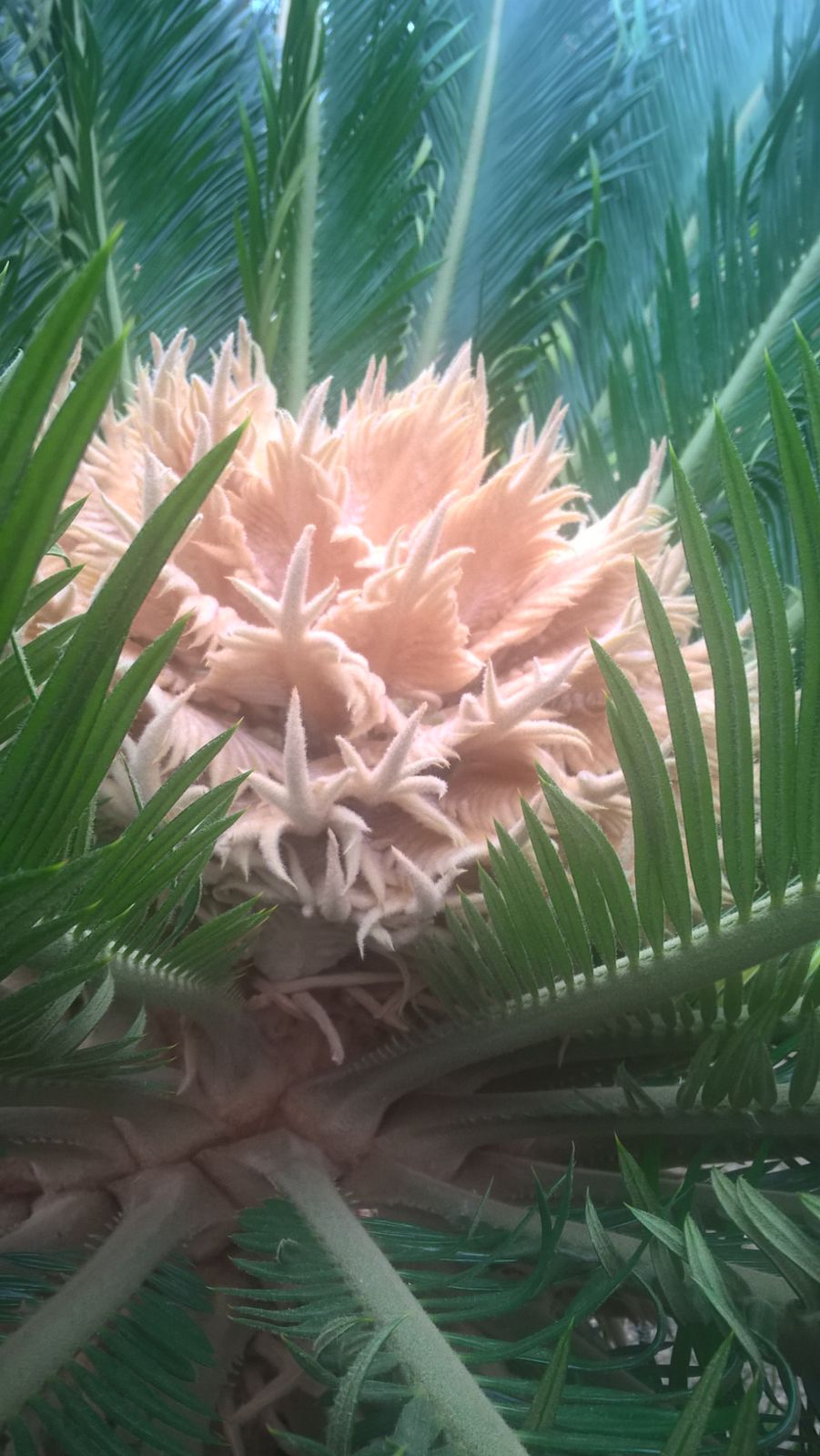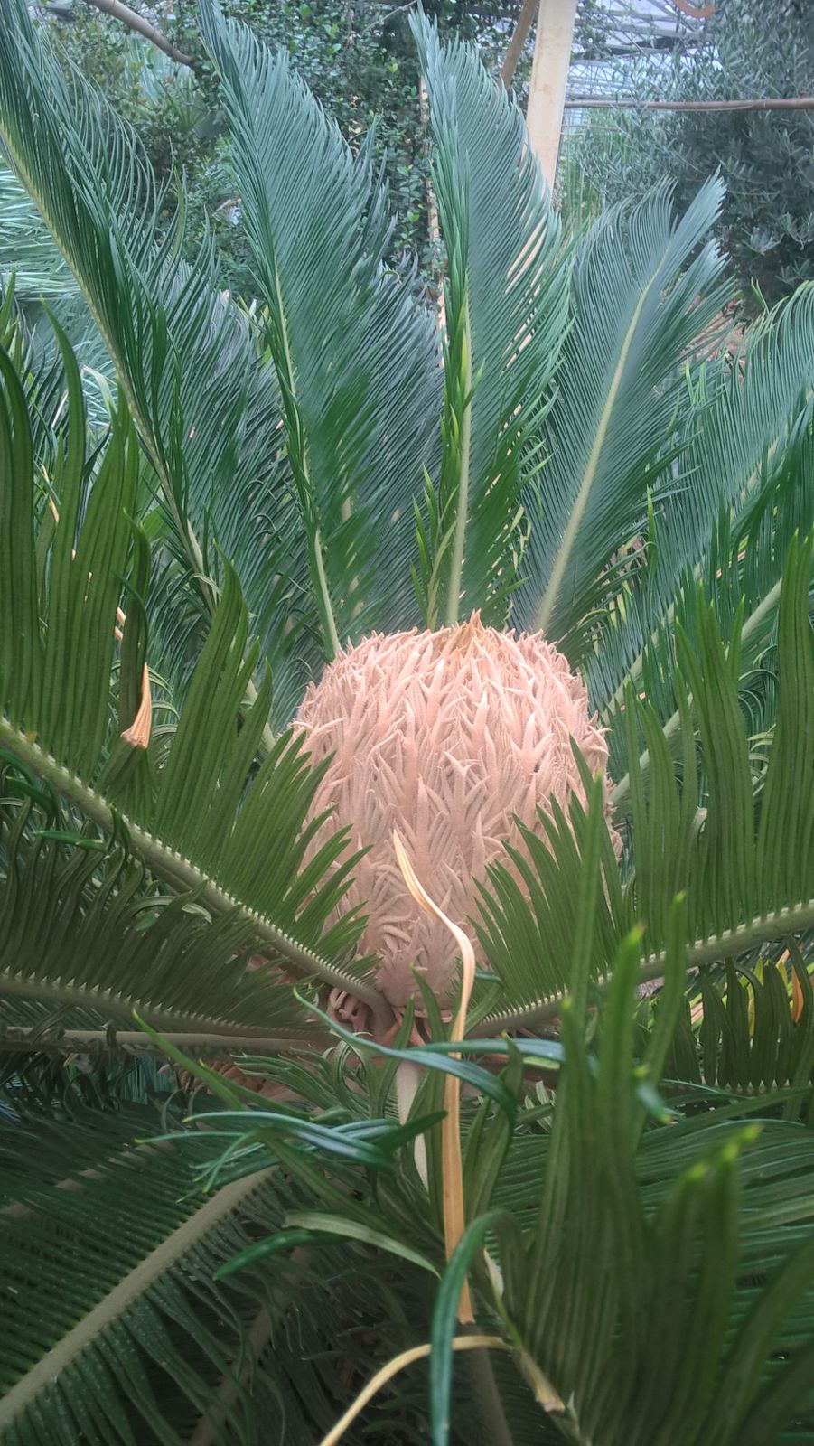 we hebben al jaren lang een cycas in een onverwarmde tuinkast wat je niet vaak ziet in Nederland is nu toch gebeurt hij bloeit en geeft zaad de foto's spreken voor zich