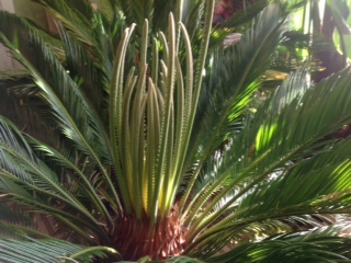 Mijn Cycas maakt momenteel een nieuwe bladerkroon met vele zijscheuten, zie bijgaande foto's.