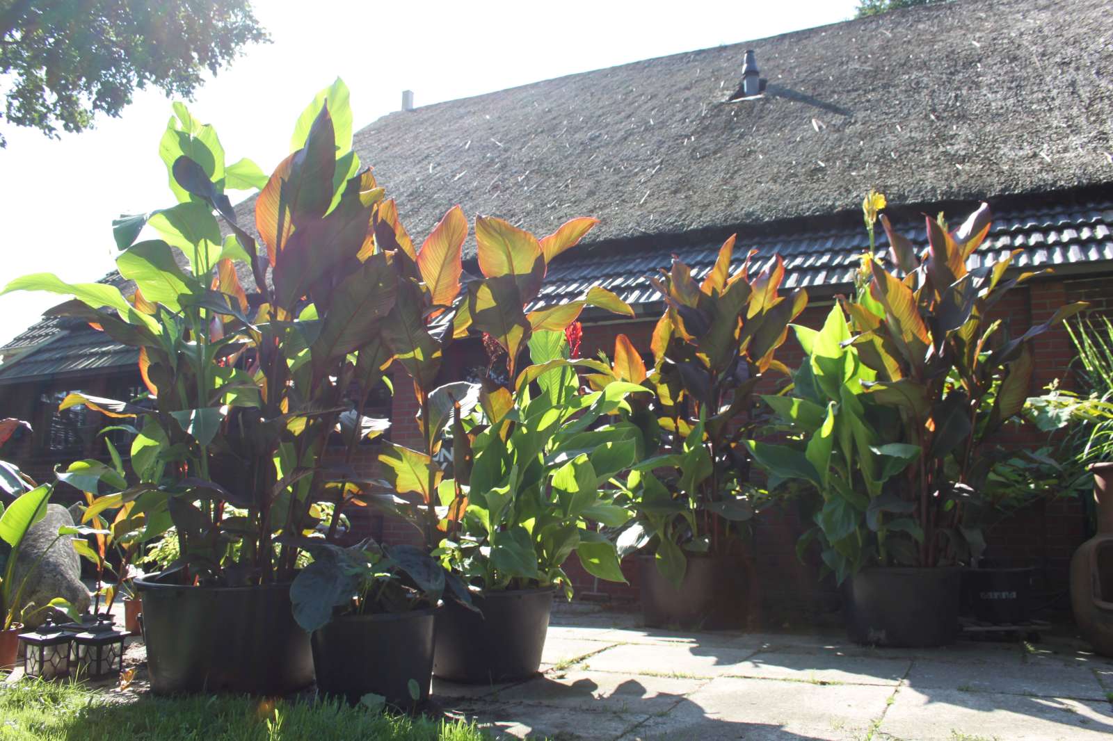 Ik moet wel bekennen dat mijn kennis van de tropische tuin helaas niet heel groot is. ( Er staan 4 paarden achter het huis die de meeste tijd EN ruimte opslokken ) Maar ik doe dapper mijn best om de overige ruimte op te vullen met allerlei soorten bamboe, canna's , bananen en leuke planten waarvan ik GEEN idee heb wat het is. Maar zodra het een groot blad heeft of een mooie structuur kan ik het niet na laten om te kopen en probeer het vervolgens in leven te houden.