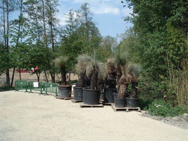 Inderdaad Ben, het is ze niey zozeer te doen om de lokale situatie zo exact mogelijk na te bootsen maar het gaat meer om het totale plaatje. "faire rever" oftewel doen dromen. En daar slagen ze wel degelijk in. De keuze voor Jubeae's heeft ook te maken met hun winterhardheid. Zo hoeven ze niet alles steeds uit te graven. Ook worden de verliezen zo enigszins beperkt.