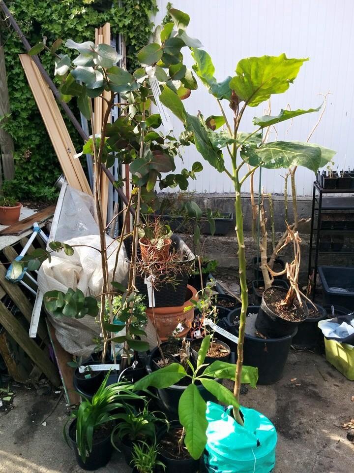 6 Yucca, 28 Johannesteijsmannia altifrons, 2 J. magnifica, 2 Kerriodoxa, 1 Synecanthus, 1 Carpentaria, 4 Arenga pinnata, 1 Butia yatay, 2 Sabal minors, 6 Sabal palmetto, 2 Sabal. sp. Lousiana, 12 Livistona chinensis opgepot in grotere potten variërend van 0.7 tot 10 Liter