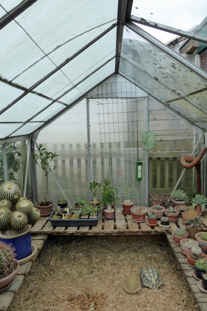 De schildpadden hebben naast het kasje ook nog een ruim buitenverblijf.