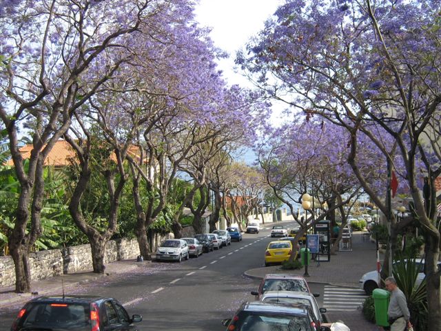 Ik denk dat, deze en volgende maand de beste tijd is om naar Madeira te reizen dan beginnen de Jacaranda bomen te bloeien,heb hier nog een foto van in mei 2006 met bloeiende Jacaranda bomen