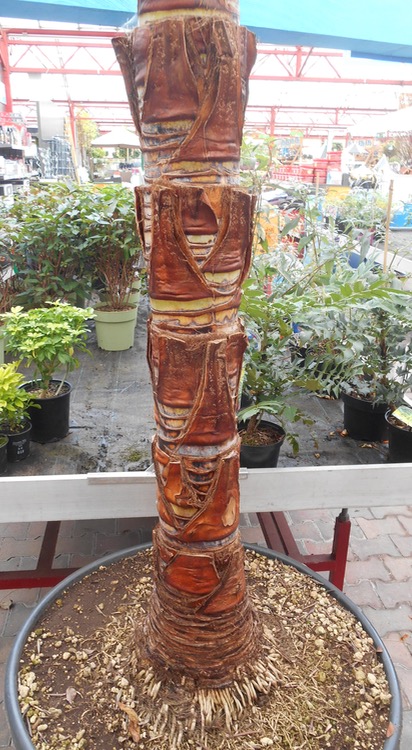 De stam van Trachycarpus fortunei wordt soms ontdaan van de bladrestanten. Ik had zelf jarenlang een geimporteerd exemplaar met zo'n gestripte stam en dze werden ook een periode bij GP aangeboden. Je kunt dit mooi vinden of niet, het dient dan wel netjes te gebeuren en niet zoals op deze afbeelding. :roll:
