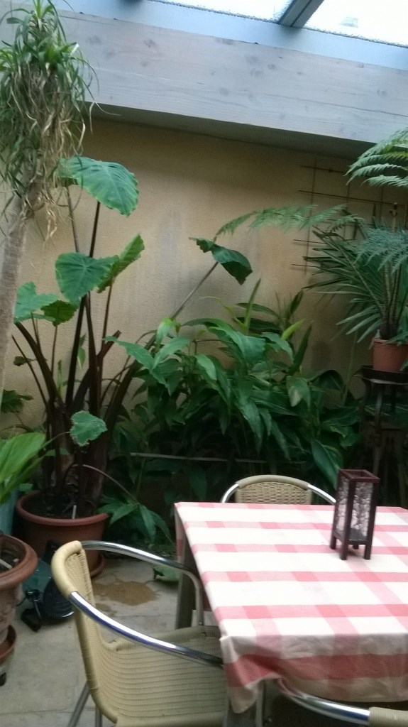 Onlangs mijn stadstuintje van een dikke 4x4meter overdekt met dubbel glas. Om 's zomers niet opgesloten te zitten schuift het dak voor 2/3 open.