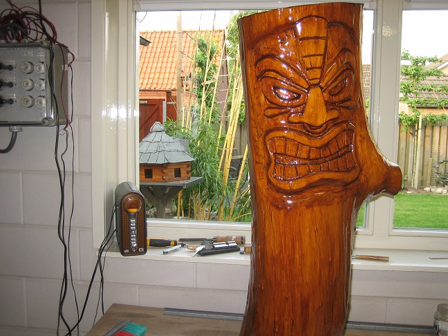 mijn tiki is bijna klaar, nog een laagje beits er op en hij kan de tuin in.