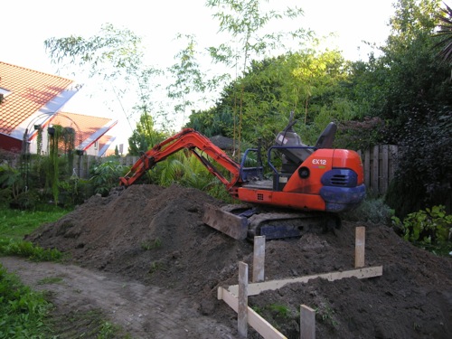 Je zit waarschijnlijk op zandgrond Jan, dan kun je met een eenvoudige fundering volstaan, rondom een sleuf graven van 60 cm diep, een bekisting plaatsen met wapening, een cementmolen huren en de fundering volstorten met cement. Eventueel kun je in de opzet een vloer meenemen met een laag isolatiemateriaal eronder (platen van 5 cm dik). Bij een aansluitende muurkas is het belangrijk om de stabiliteit van de ondergrond te kennen (sonderingsrapport bij gemeente opvragen), omdat verzakking ten opzichte van de bestaande bouw scheuren kan veroorzaken. Bij mijn eerste aanbouwkas eveneens op kleigrond was dit niet goed onderkent en scheurde het aansluitende tegelwerk. Een plastische verbinding kan dit euvel eventueel ondervangen.