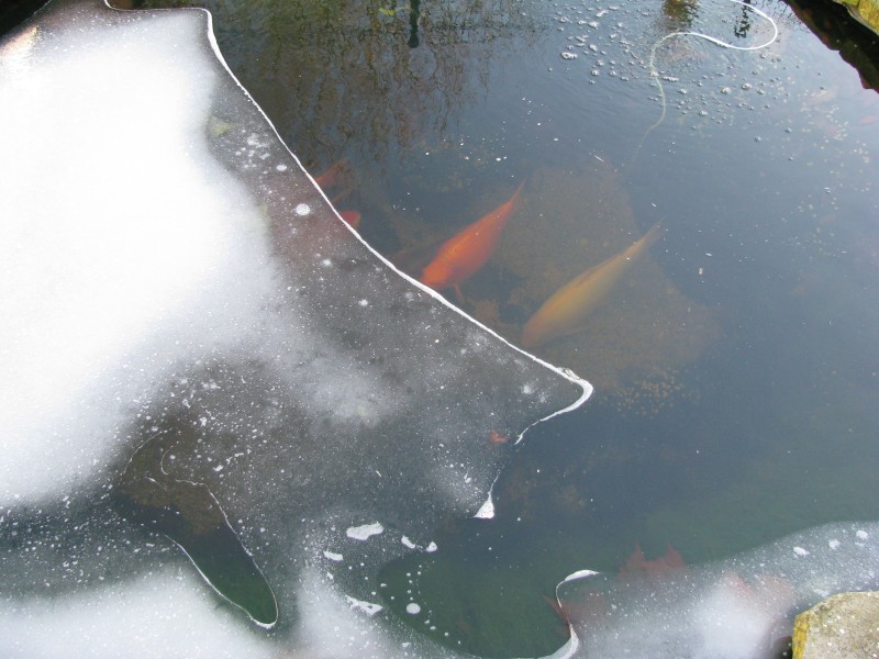 Wat ik me wel afvroeg: hoe zit het met de sneeuw op de vijver. Moet er zonlicht aan het ijs kunnen?