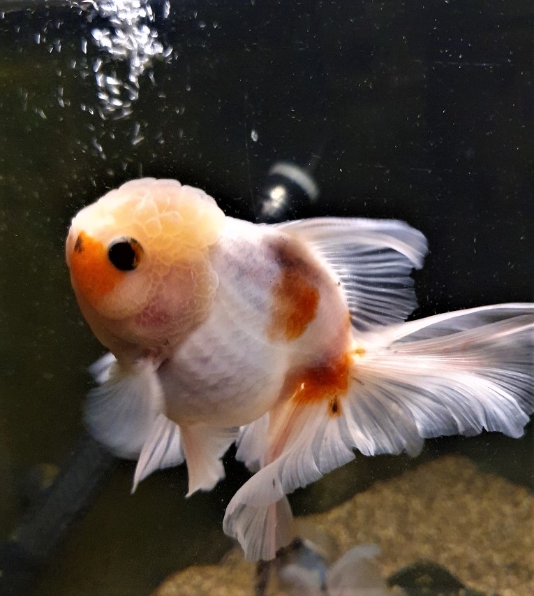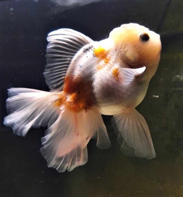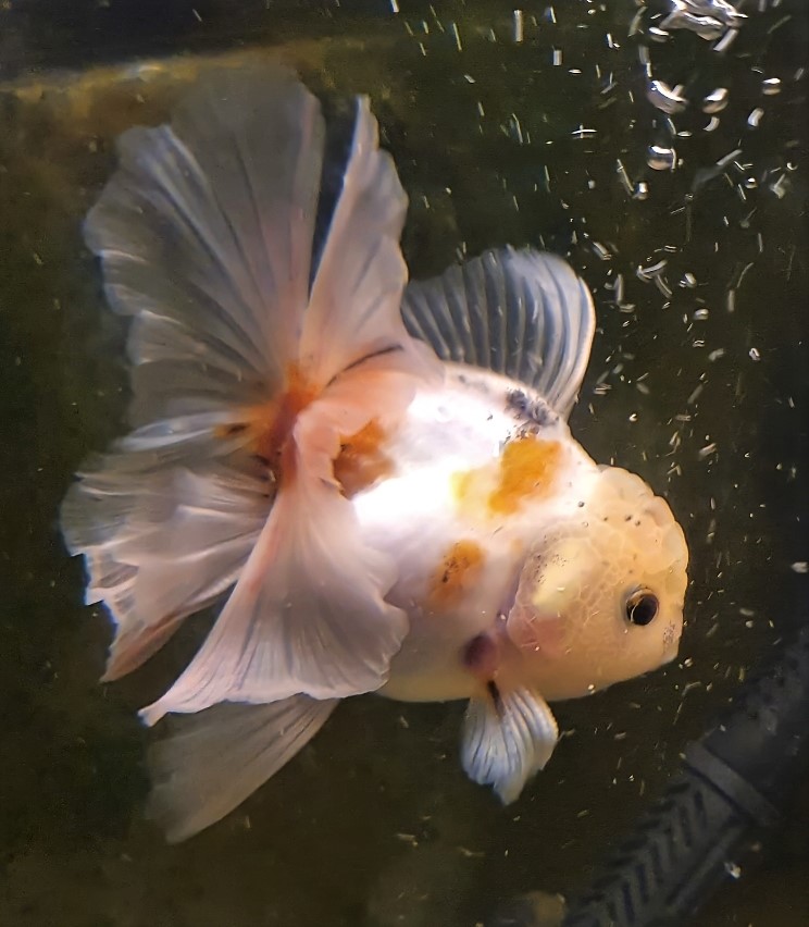 Door de wijd uiteen staande dubbele staartvinnen, en terugkrullende onderkanten van de orchidtail gaan de zwemcapaciteiten er logischerwijs niet op vooruit , maar moet zeggen dat deze bijzonder goed, gebalanceerd beweegt, doet haast niet onder voor de rosetails. De markante staart is goed zichtbaar op de foto's die ik even snel genomen heb.