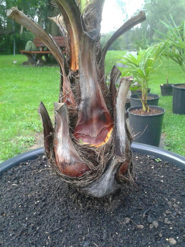 Het viel mij op dat die andere palmen wel een afgerond beginstuk van het blad hebben.