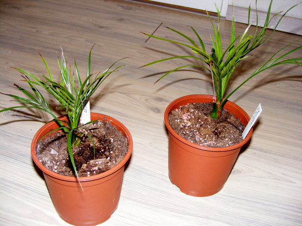 Vorig jaar december heb ik 2 zaailingen van nu 2 jaar oud, ik heb ze opgepot in gewone potgrond. Misschien dat ik ze verpot naar palmgrond met meer perlite. Ik heb het idee dat ze het heel erg goed doen in zon tot half schaduw, ook in heette zomermaanden.