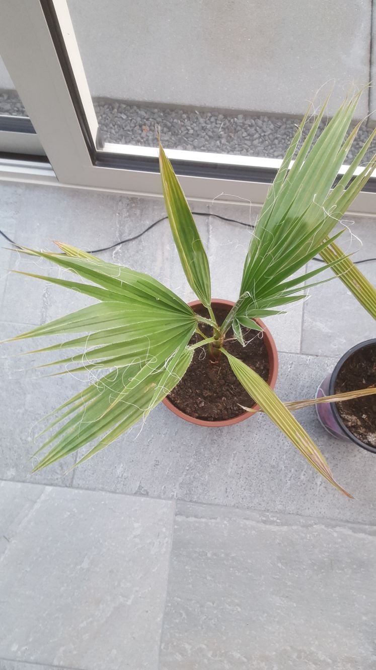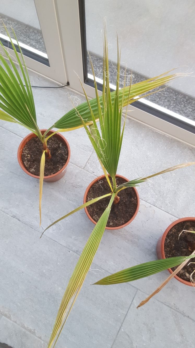 Afgelopen voorjaar heb ik een aantal Washingtonia Robusta gezaaid. Zij hebben altijd in de serre gestaan, deze heeft weliswaar vloerverwarming maar als het bewolkt is blijft het er koel. De palmbomen groeiden goed en omdat het inmiddels kouder en minder lang licht is, geef ik ze nog maar weinig water. In de serre is het ondanks de vloerverwarming ongeveer 15 graden. Sinds ongeveer twee weken zijn de bladeren echter geel aan het verkleuren.