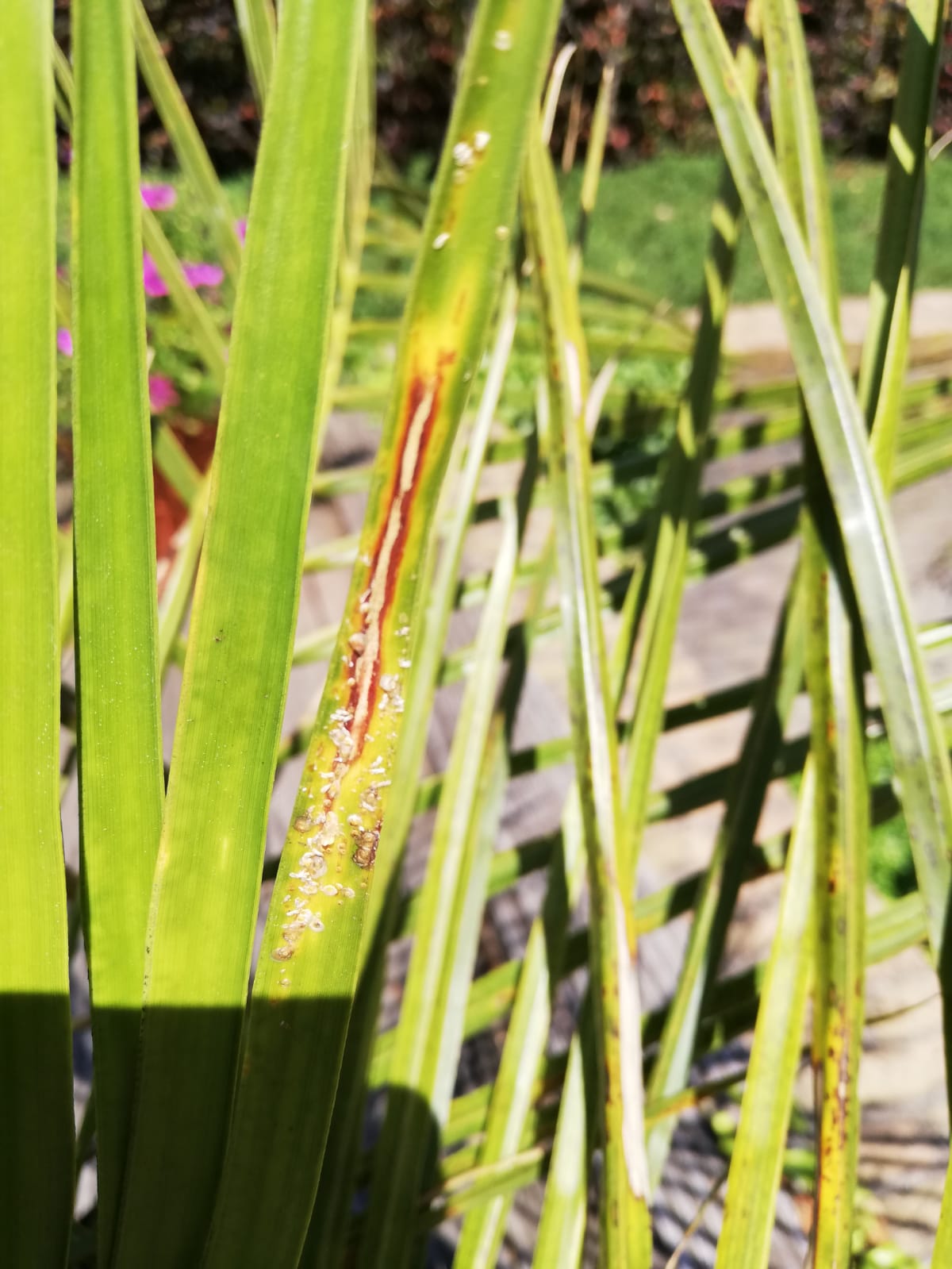 Ik heb al een paar jaar een Jubaea in pot in de tuin staan. Sinds dit voorjaar is hij een stuk geler geworden en sinds enkele weken zie ik steeds meer witte puntjes op het blad. Ik vermoed dat het schildluis is maar ik kan het niet precies vaststellen. Iemand die de witte plekken op de foto's herkent? En mij advies kan geven over hoe ik er weer vanaf kan komen??? :D
