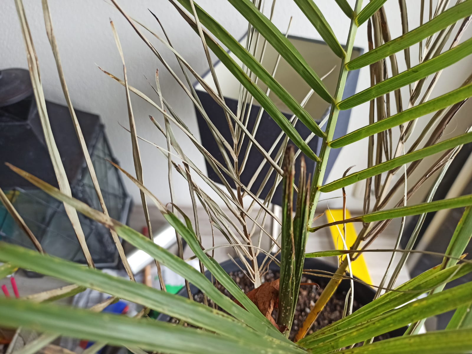 Het bruine blad kan eraf btw. Het afstoten van de buitenste bladeren is overigens wel normaal.