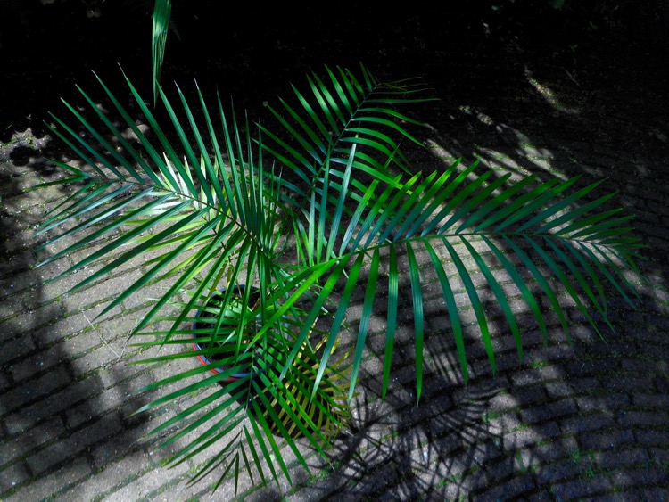 Heb ik dan eindelijk de perfecte kamerpalm gevonden? De palm die ongevoelig is voor spint en ander ongedierte behoudens een verdwaalde dopluis die makkelijk te verwijderen is. En die de winter met droge kamerlucht verdraagt zonder ook maar bruine tips aan de bladpunten. Het begint erop te lijken met deze fijngeveerde Ravenea glauca. Ik beschouw deze als een uitstekend alternatief voor Lytocarium weddellianum die bij mij ondanks een koelere overwintering al snel bruine bladpunten krijgt. De verwante Ravenea rivularis geniet meer bekendheid dan deze soort en die heb ik ook enige keren gehad. Deze stond wel bovenaan op het spintmenu. Voor de foto is de palm even buiten gezet maar de glauca doet het ook prima als kuipplant gedurende de zomer. Er wordt gezegd dat deze soort meer kou verdraagt dan de rivularis. Ik heb dat nog niet uitgetest in de vorstvrije kas, maar 10 °C is geen enkel probleem.