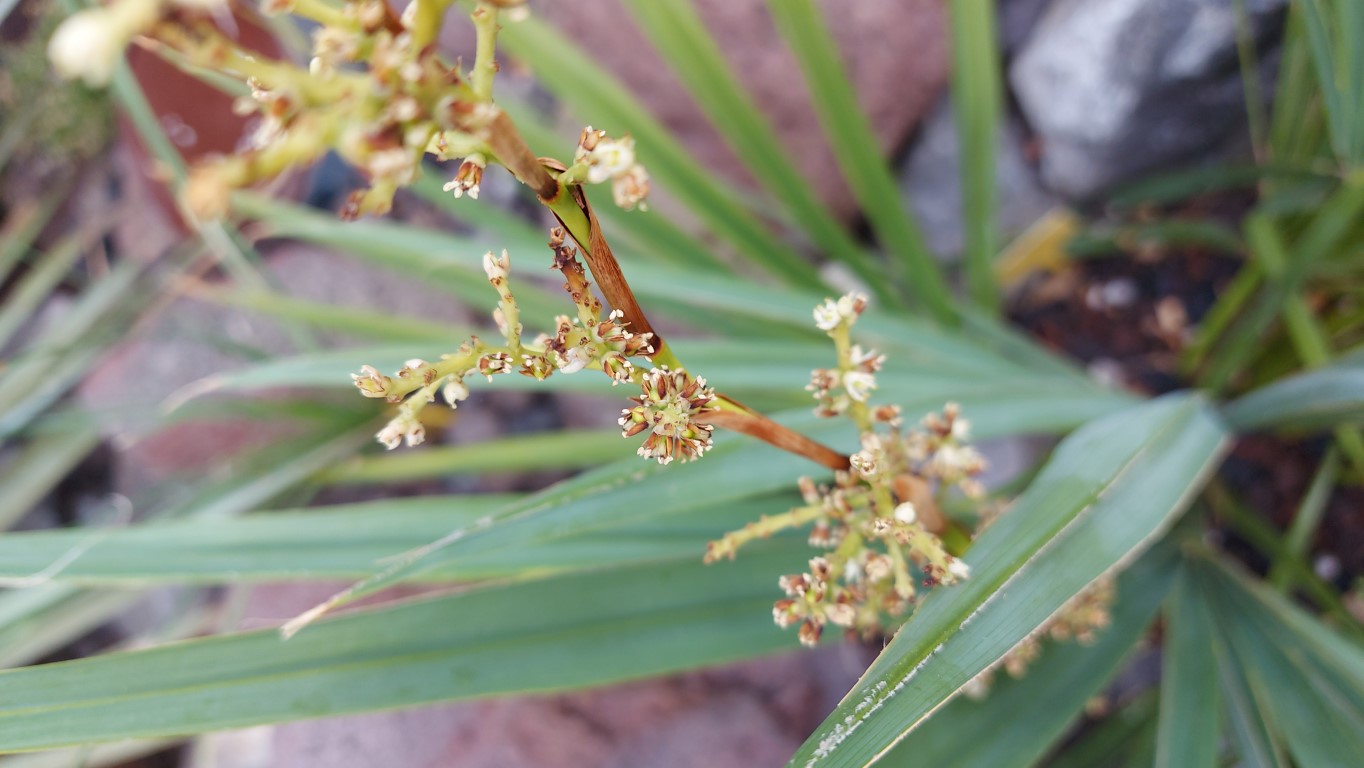 Dit is een Sabal minor denk ik moet nog een winter maken in grond waar ik van op kijk is dat deze al bloeit zo klein.