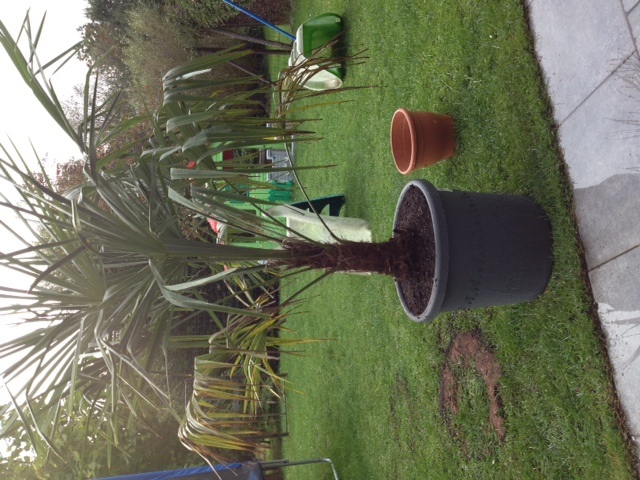 Plant steekt in een nieuw jasje. was ni veel klei meer af te hozen. Juist boven de kluit.