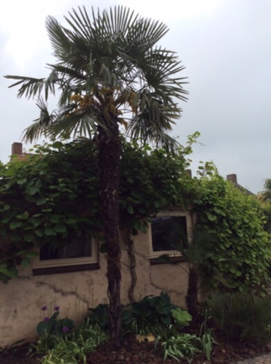 Trachycarpussen met dunne stam vanonder zijn ook schitterende palmen vind ik, als er maar een mooie volle kroon opstaat!