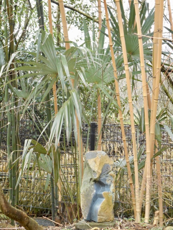 Ik heb de 'Manipur' langgeleden als zaailing meegenomen uit Panningen waar Herbert ze toen voor het eerst presenteerde. Na jaren verblijf in kuip heb ik de palm in 2012 uitgeplant. De palm weet zich goed te handhaven maar ik vind hem nog steeds niet bijzonder aantrekkelijk. Dat zal deels komen omdat de standplaats half onder de bamboe niet ideaal is. Maar de betere plekken in de tuin wijs ik liever toe aan bewezen soorten. Aan de winterhardheid twijfel ik niet. Dat is wel anders bij de geminisectus die ondanks een glazen afdak deze winter opnieuw flink te leiden heeft gehad. Daarentegen is de gevestigde takil 'Kalamuni' de winter goed doorgekomen en ik hoop dat de groei hiervan wat zal gaan versnellen.