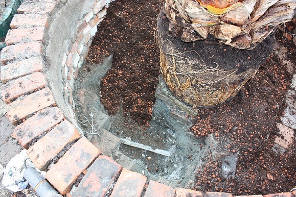 Hou er ook rekening mee dat zo'n bergje vlugger bevriest als wanneer de palmboom op de "platte grond" staat. Al mijn palmbomen op een "bergje" zijn er beduidend slechter aan toe dan degenen die gewoon in de grond zitten.