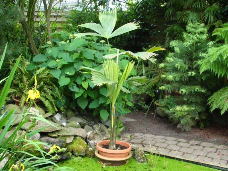 De carludovica staat nu al zo'n 14 dagen in de vijver, en ziet er nog steeds goed uit. De zijscheuten zijn ook volop aan de groei.