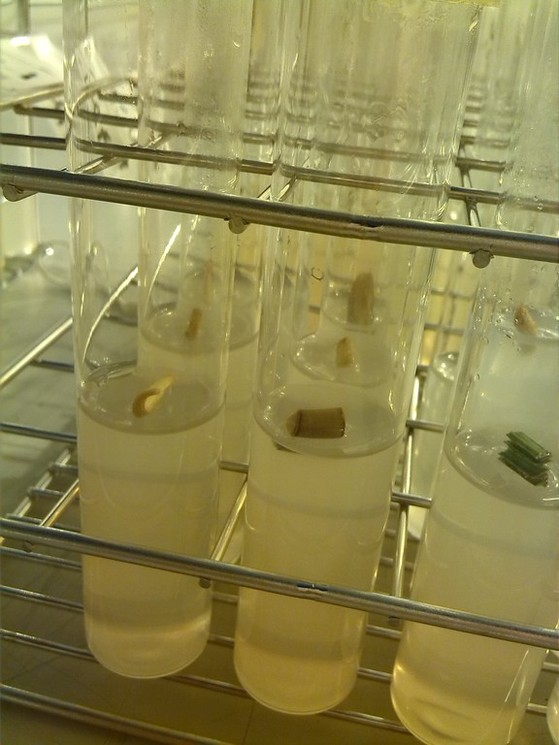 Voor weefselkweek heb je een specifieke uitrusting nodig zoals een laminair flow kast om steriel te werken, een incubator met verlichting en zonodig CO2. Anders ben je schimmels aan het kweken.