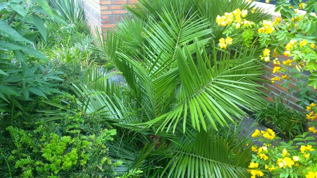Dennis_S schreef:Mijn Jubaea maakt een goede ontwikkeling door denk ik zo. De eerste foto is uit juli 2011. De laatste foto is van vandaag. Vorig jaar zes nieuwe bladeren, maar dit jaar blijft steken bij vijf. Maar de grootte neemt wel toe. onder al dat blad bevindt zich een massieve stam die flink aan het aanzetten is. blijft een van mijn favorieten!