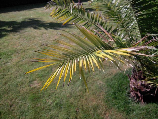 trachycarpus schreef:Kan iemand me zeggen hoe het komt (en dit is al wel altijd zo geweest) , dat mijn phoenix canariensis zijn buitenste bladen altijd wat gelig zijn?