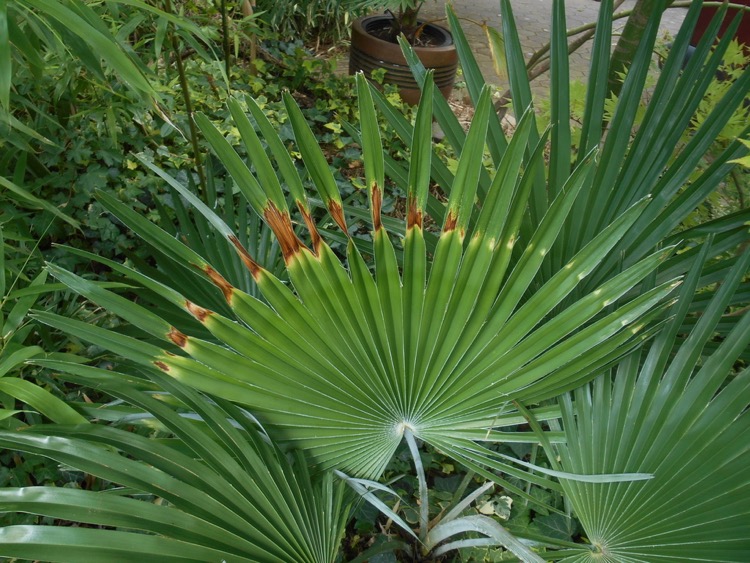 Nog even over de ukhrulensis, die begint met het ontvouwen van zijn vijfde blad en is daarmee de periode van aanslaan voorbij. De groei komt nu echt los en om eerlijk te zijn is dit ook wel echt een mooie palm. Nog meer tomentum dan bij de echte princeps, ook op de bladeren, een een fraaie meer blauwwitte gloed over de onderkant van de bladeren. De stamdiameter is echter nog dunner: ik schat een cm of 15 maximaal.