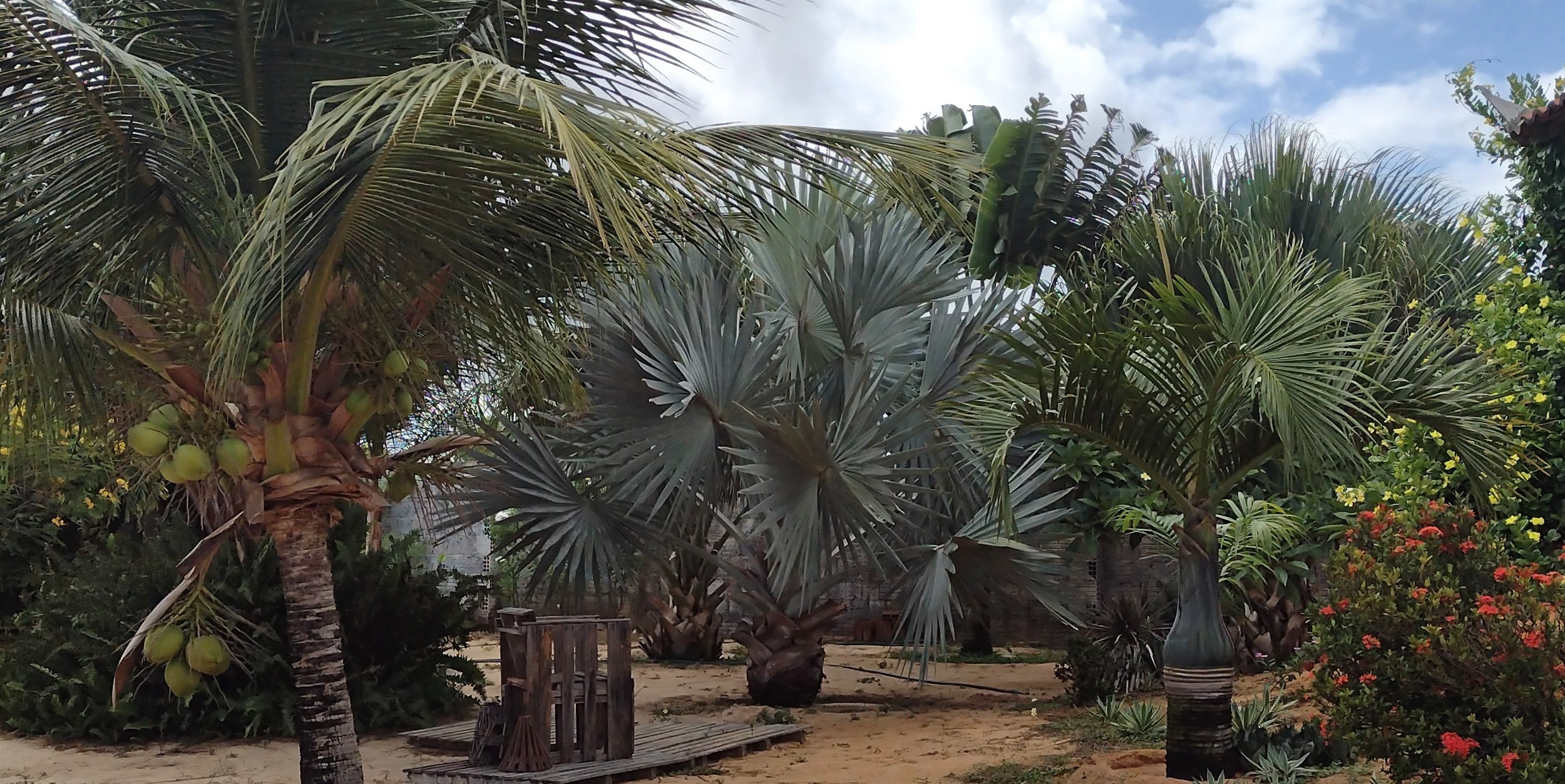 Kan niet tippen aan jouw monster dus heb vanmorgen maar wat blad gesnoeid van de Cocospalm, zodat ik wat beter vrij zicht heb op ons Bismarckje ;)