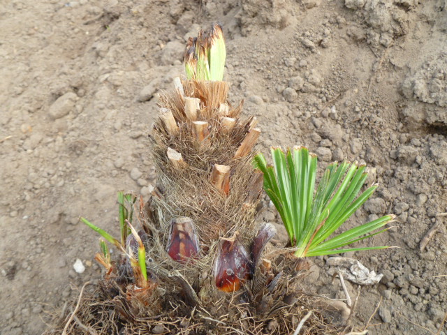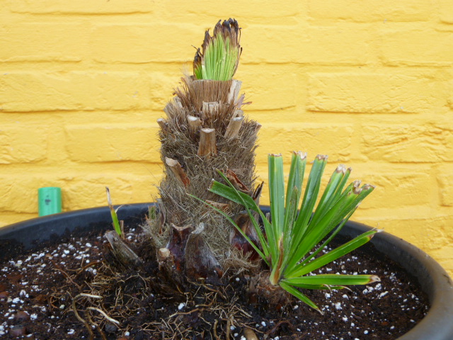 Het nadeel van afzagen is dat je een misvorming krijgt in de stam. Ik heb hier helaas geen voorbeeld van doormiddel van een foto maar je kunt het goed zien hoor. Op die bepaalde plek lijkt het of er ineens een dunnere stam uit een dikkere stam komt, dus met een soort trapje en ook op die plaats zijn veel meer oude bladstelen die wat door elkaar zitten. Dit komt omdat de bovenkant van de stam open barst als het ware. Ik heb al geregelt eens palmen gezien in tuincentra waarbij ik zag dat ze jaren geleden hersteld zijn van speerrot, die laat ik dus staan omdat het niet zo mooi is natuurlijk maar ook omdat ik dan al weet dat het een zwakker exemplaar is.