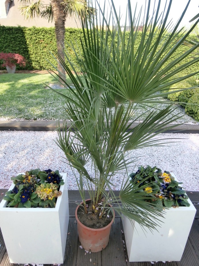Ook ben ik woensdag naar de floralux geweest en eindelijk een Washingtonia robusta gevonden en ook een Chamaerops humilis meegebracht ( die denk ik begint te bloeien ).