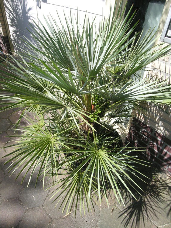 De afgebeelde palm is mijn favoriet een kleinbladige traaggroeiende versie die momenteel vol zaad zit als gevolg van een kortstondige liaison met een groene soortgenoot.