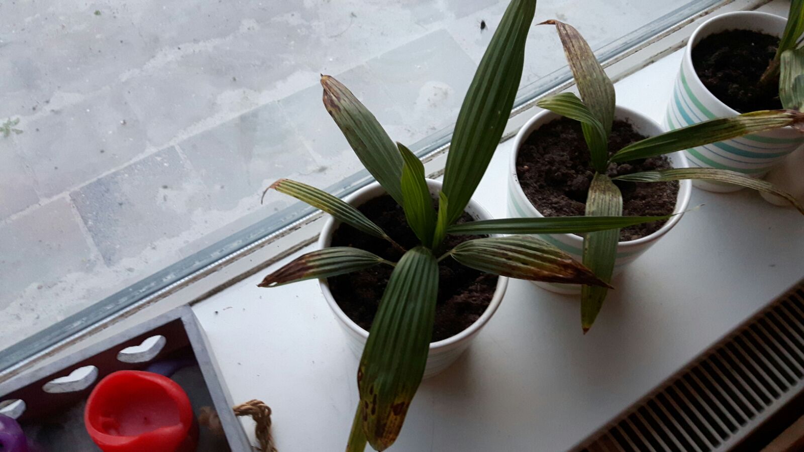 Hallo, mijn 1,5 jaar geleden vers gezaaide tachycarpus fortunei (3 stuks) heeft deze week veel bruine plekken gekregen op de bladeren. Het is natuurlijk erg warm geweest. Is dit nou wat men noemt... verbranding op de bladeren? Ze staan al een half jaar op deze plek waar de hele dag zo'n is. Ze groeien dan ook lekker snel heb Ik het idee.